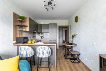 - Удобства: кровать, диван-кровать, дополнительное спальное место по запросу, телевизор + смарт-тв; свч, варочная панель, духовка, посудомойка, холодильник, стиральная машина, фен, утюг.