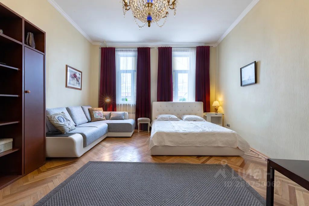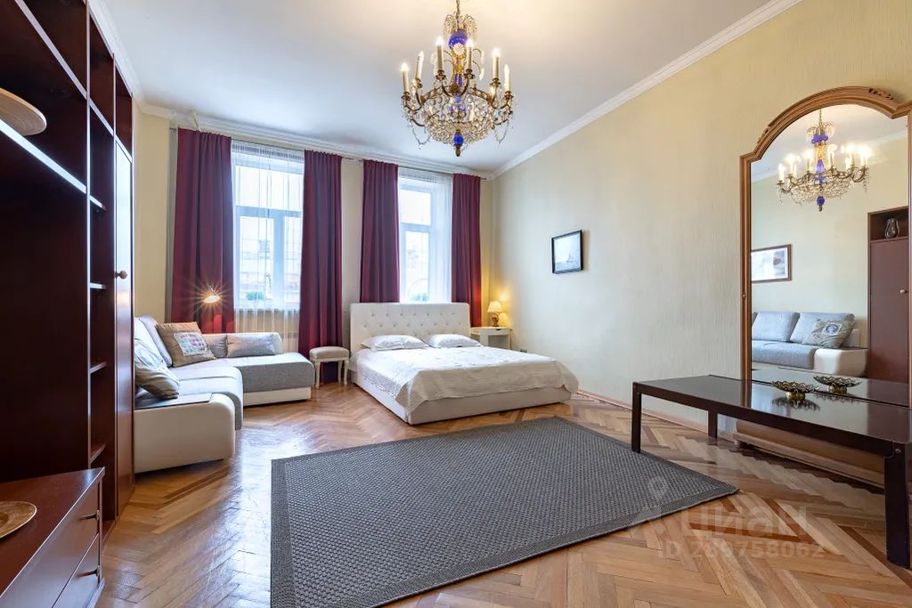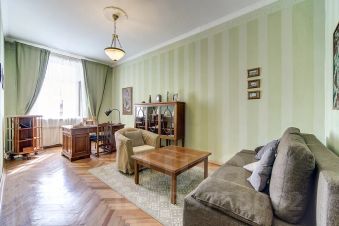 Эта трехкомнатная квартира расположена в историческом центре города, на Большой Конюшенной улице, в окружении памятников архитектуры. Ближайшие к ней станции метро это Невский проспект, Гостиный двор и Адмиралтейская.