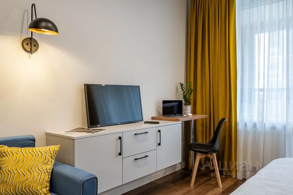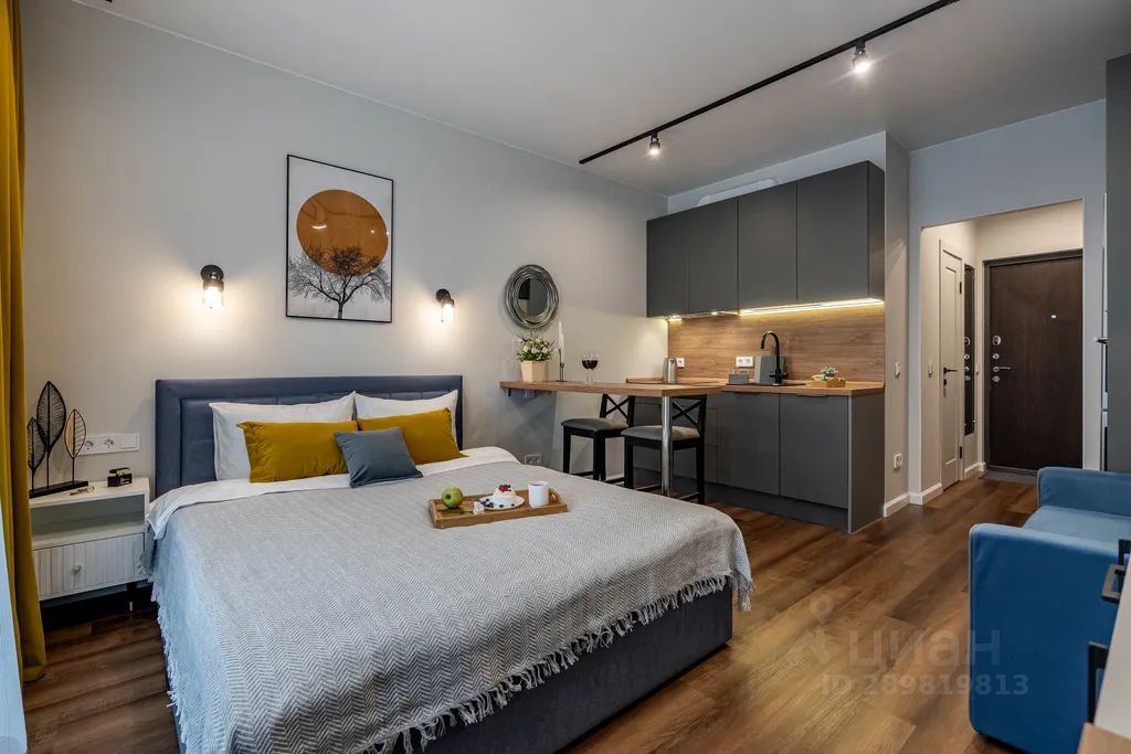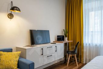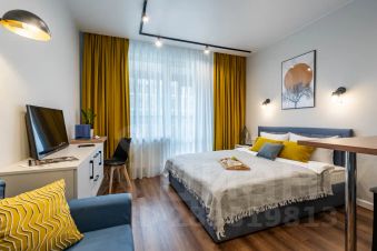 Солнечная, просторная студия в приятных тёплых оттенках — идеальный выбор для влюблённых пар, путешественников и деловых гостей города.
