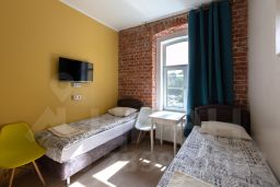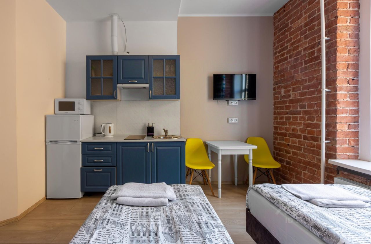 Апартаменты в стиле Loft с двумя двуспальными кроватями 20 кв.м. Для гостей есть все необходимое для комфортного отдыха: место для хранения вещей, телевизор, мини-кухня, холодильник, микроволновая печь, чайник, удобства.
