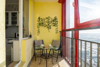 На балконе зона отдыха, с которой открывается очень красивый вид на город и закат.