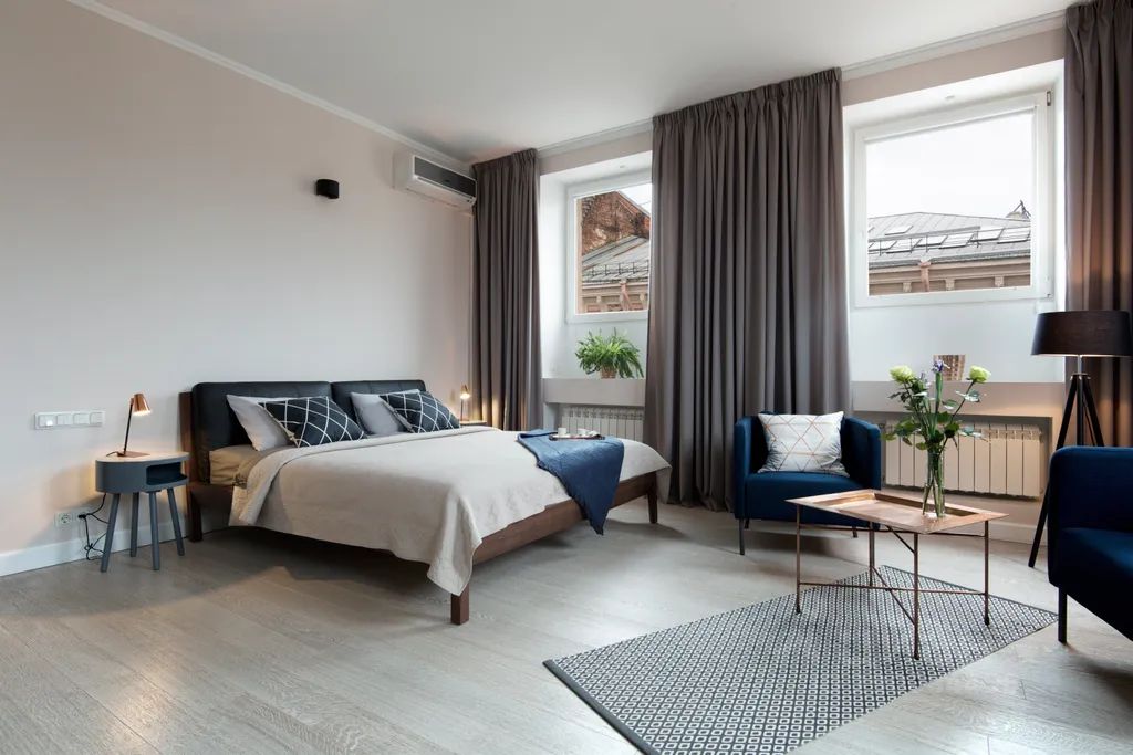 - Шторы "блэкаут" и хорошая звукоизоляция окон.