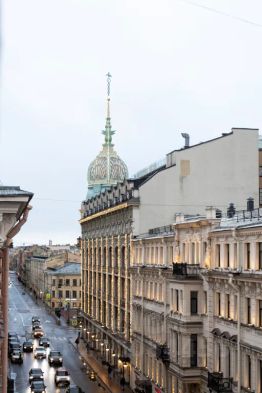 Просторная угловая квартира-лофт представительского класса с обильным естественным светом. Из окон открываются захватывающие виды: величественный купол исаакиевского собора, историческая башня универмага "au pont rouge" и романтичное небо петербурга.