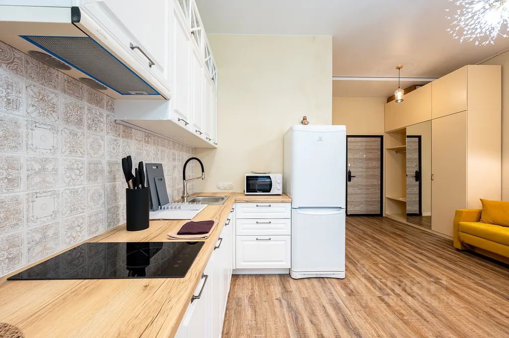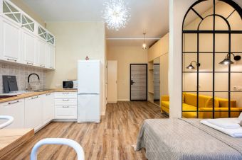 Функциональная и уютная студия включает спальную зону, кухонную зону и ванную комнату.