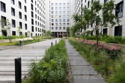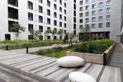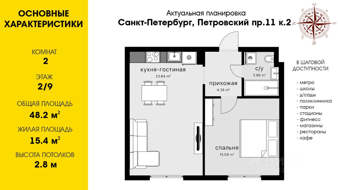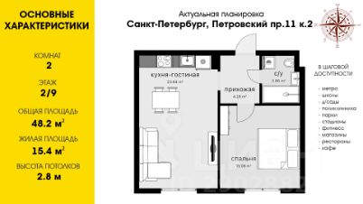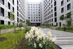 На территории ЖК собственная пешеходная набережная c пирсом и лаунж-зонами, закрытая и охраняемая придомовая территория, подземный паркинг, дизайнерский внутренний двор. Ведется круглосуточное видеонаблюдение, входы в дом оснащены IP домофонами для контроля доступа. Отделка входных групп выполнена из натурального мрамора и широкоформатного керамогранита. Высокие потолки, экологически чистые панорамные дерево-алюминиевые окна. В районе ЖК отсутствует транспортная загруженность дорог, а в пешей доступности находится Большой Петровский парк с прудом и зонами отдыха, Крестовский остров в 5 минутах пешком.