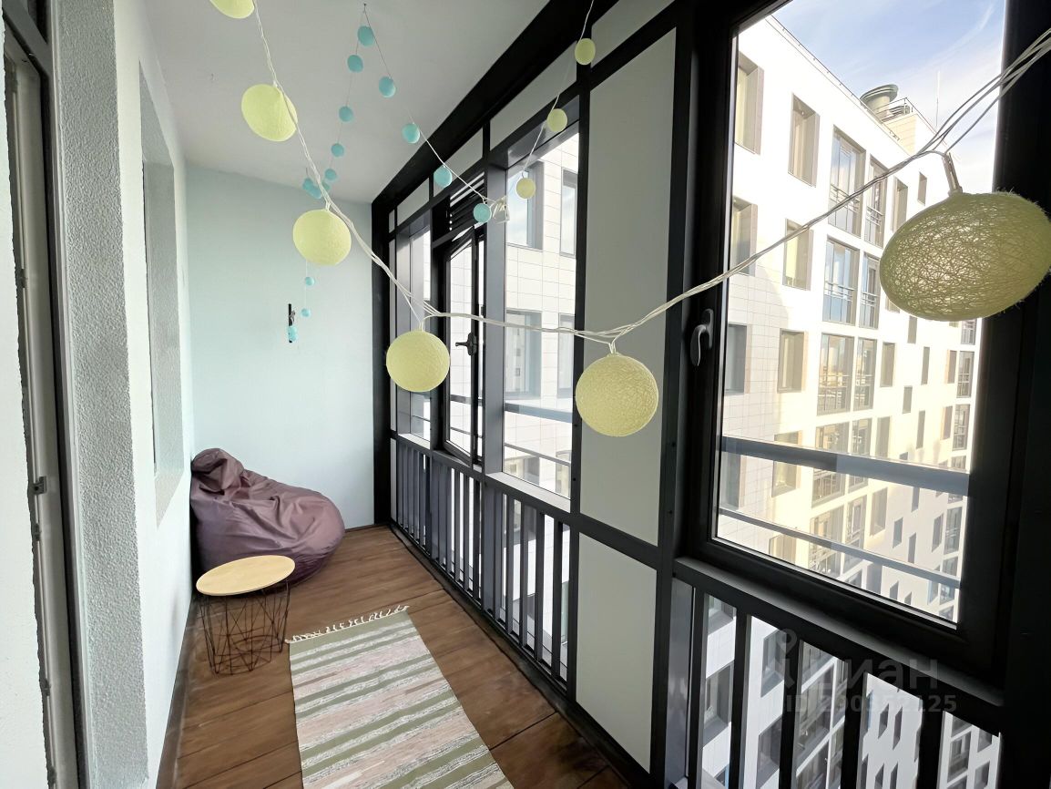 В санузле: установлена система тёплый пол, душевая кабина, стиральная машина. Застекленная светлая лоджия с видом во двор, на детскую площадку. На лоджии пуф и столик, место где можно выдохнуть в конце дня.