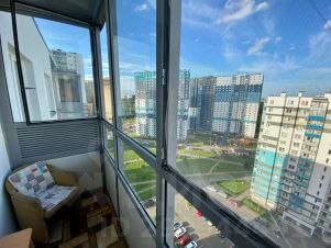 Большой застекленный балкон с видом на лес