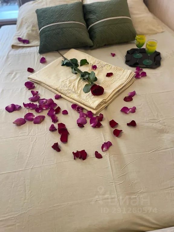 Современная студия с видом на город, особенно красиво в вечернее время. В квартире есть вся необходимая мебель:
