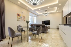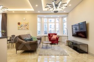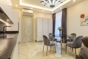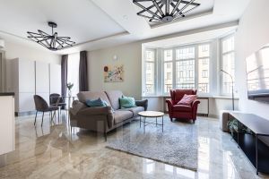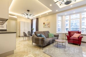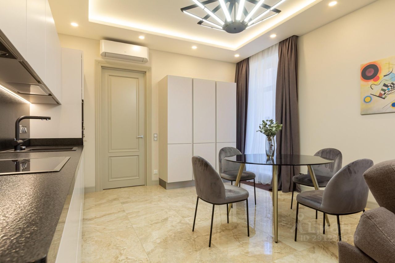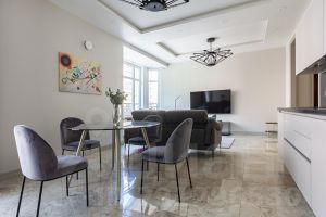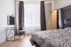 Предлагается в аренду 4 комнатная квартира в элитном жилом комплексе Парадный Квартал у Таврического сада. ЖК Парадный квартал - это целый микрорайон элитной застройки, все здания объединены единой архитектурной концепцией, фасады выполнены в неоклассическом стиле, до уровня второго этажа наружные стены облицованы натуральным гранитом и известняком. Квартира расположена на 3 этаже 8 этажного дома. Общая площадь предлагаемой в аренду квартиры 140м2. Мастер спальня со своим сан. узлом с душевой и ванной, гостевая спальня, три гардеробные комнаты, постирочная, гостевой сан. узел с душевой кабиной, детская, которая может быть переоборудована под кабинет и кухня-гостиная. Квартира частично меблирована, вся остальная мебель заказана и скоро будет доставлена. Есть вся необходимая бытовая техника, включая стиральную и сушильную машины. Ремонт выполнен в современном стиле. Кондиционирование. В комфортабельном жилом комплексе "Парадный квартал" предусмотрены автономная котельная, центральная система кондиционирования, бесшумные скоростные лифты фирмы "Отис", собственная 4-х ступенчатая система очистки воды. Есть одно закрепленное место в подземном паркинге