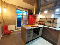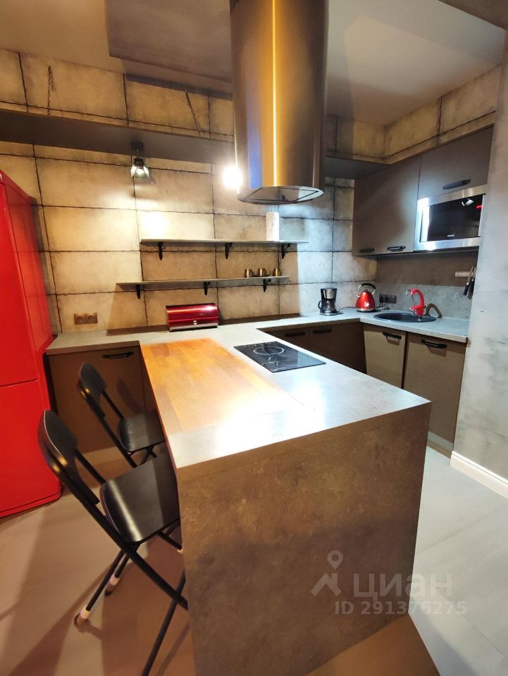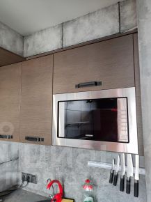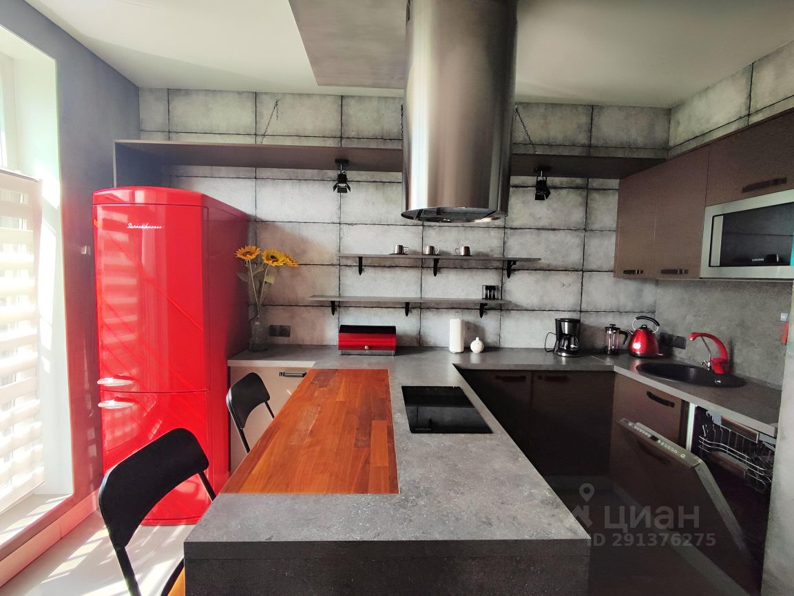 В квартире сделан ремонт в стиле "лофт". На кухне установлена встроенная стильная кухонная мебель со встроенной техникой: варочная панель, духовой шкаф, СВЧ, посудомоечная машина, вытяжка. Есть вся необходимая посуда, чайник, кофеварка. В гостиной : удобной просторный раскладной 2-х спальный диван, огромный вместительный встроенный шкаф на всю стену, рабочее место у окна.В спальне 2-х спальная кровать. Во всех комнатах установлены ТВ. Проведен высокоскоростной интернет.