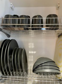 - кухня оборудована электрическим чайником, холодильником, варочной панелью, микроволновой печью, посудомоечной машиной, посудой и прочей кухонной утварью;