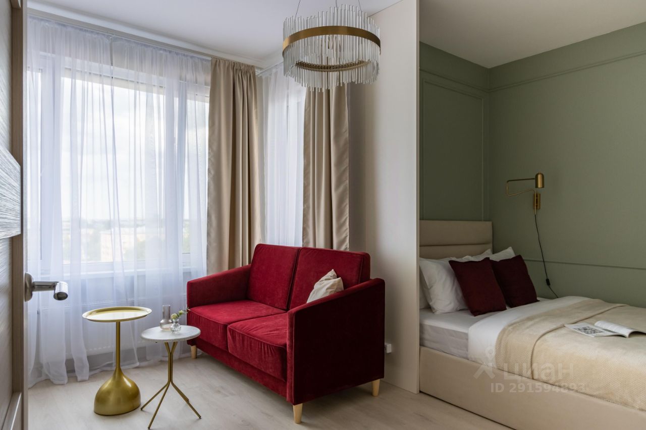Спальня: кровать с ортопедическим матрасом, шторы блек-аут для комфортного сна. Рабочее место, зона гостинной с раскладывающимся диваном, смарт тв.