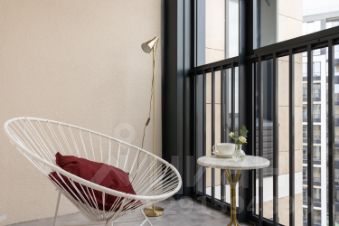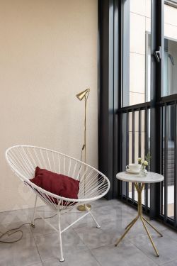 Балкон с панорамным остеклением и уютным креслом.