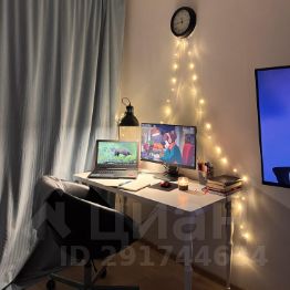 Из техники есть все для удобства в том числе большой телевизор 50 дюймов, монитор, робот-пылесос и увлажнитель воздуха. Двуспальная кровать 140 см в комнате и односпальная софа на кухне. Удобное рабочее место. В основном вся мебель и декор Икея. Есть набор красивой посуды.