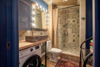 3. Туалетная комната с нестандартным решением по оформлению стен.