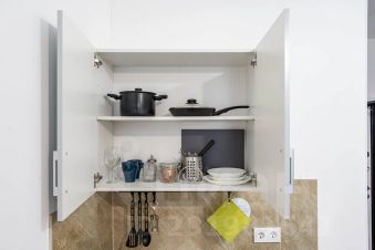 В самих апартаментах разместится двое гостей. Есть кухонный уголок с плитой, чайником и необходимой посудой. В ванной есть фен, косметические средства и зубные наборы. Можно с комфортом поработать за удобным столом. Всё что может пригодится в путешествии.