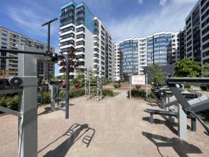 На территории ЖК есть Фитнес-клуб и зоны workout с тренажерами, детский сад