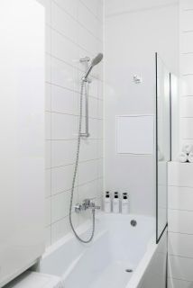В ванной комнате предоставляются необходимые туалетно-косметические принадлежности. Мы также позаботились о том, чтобы предложить Вам чай, кофе и печенье, чтобы Вы могли с дороги перекусить.