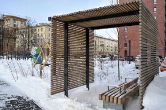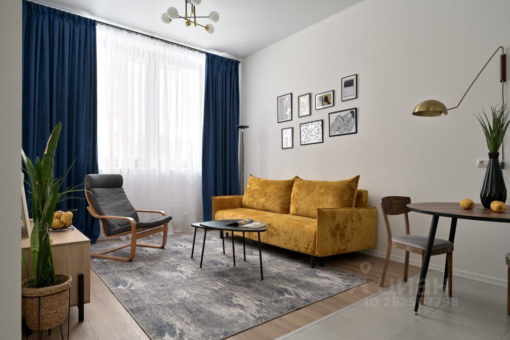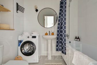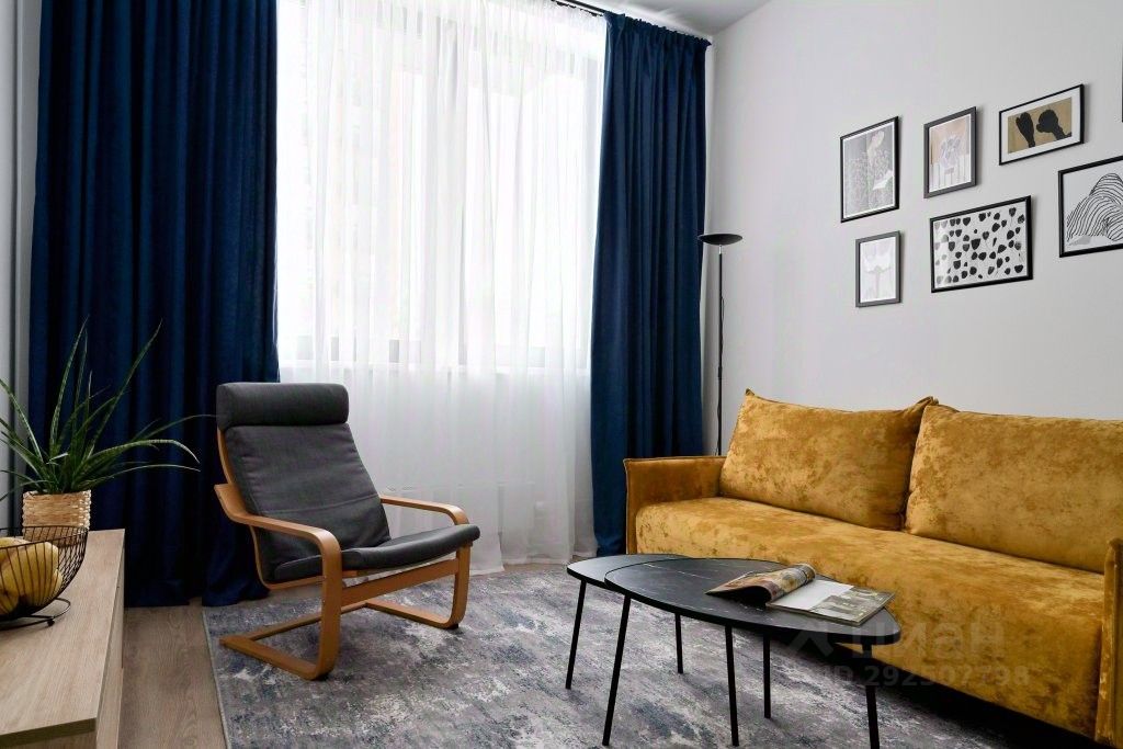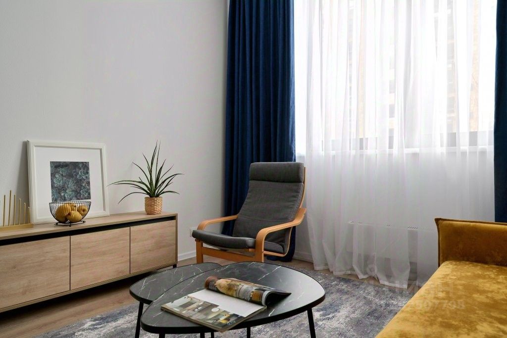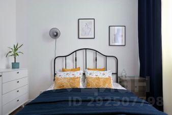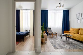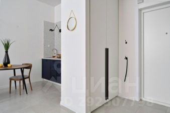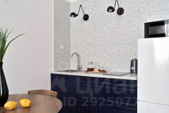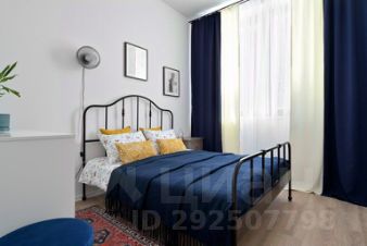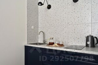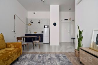 Апартаменты с высоким трёхметровым потолком включает в себя отдельную спальню и большую кухню-гостиную. Окна выходят в закрытый двор.