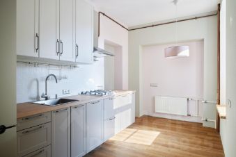 Хозяин квартиры постарался воссоздать атмосферу данной квартиры, освежив ее облик при этом сохранив основные исторические детали. Дубовый вековой паркет. Изразцовая печь. Сохранившиеся деревянные двери.