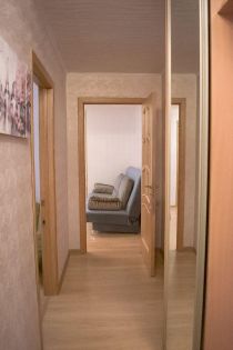 - ТЕХНИКА: холодильник, микроволновая печь, чайник, газовая плита с духовым шкафом, вытяжка кухонная, стиральная машина, утюг, телевизор, гладильная доска, сушилка для белья.