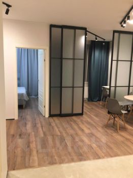 Продуманная до мелочей квартира с зонированием за счёт выполненной на заказ раздвижной алюминиевой перегородки с безопасным стеклом. Добавлено окно между квартирой и лоджией. Можно организовать зону - кабинет, зону-столовую, общая зона.