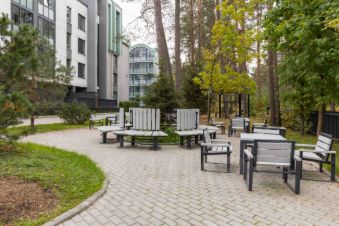Подземный паркинг, наземная парковка, комната для хранения велосипедов, площадки для отдыха. Комплекс расположен рядом с санаторием "Сестрорецкий курорт", в котором ведется реконструкция, но работают некоторые направления.