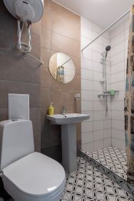 - Собcтвeнная вaннaя комната в керамической плитке (душ, фен, уборная)
