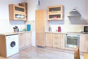 Полностью укомплектованная кухня, посудомоечная машина, микроволновая печь, посуда, стиральная машина, утюг, гладильная доска, фен, безукоризненно чистое БЕЛЬЕ и ПОЛОТЕНЦА. Чай, кофе, сахар, специи, туалетные принадлежности.