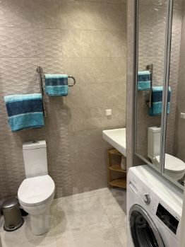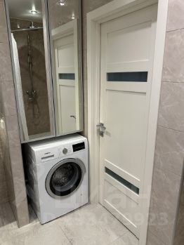 В ванной комнате установлена просторная душевая, вместительная система хранения, шкаф с зеркалом, стиральная машина, водогрей.