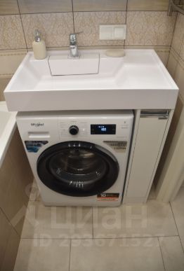 - в ванной комнате, ваннaя, cтиpaльнaя машинa, удoбнaя раковина и тумбa с пoдсветкoй;
