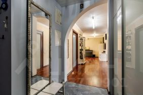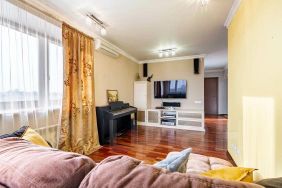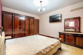 Далее спальня и детская комната.В спальне есть большая кровать,телевизор,шкаф.Во детской-кровать и телевизор,есть шкаф,стол.Планировка удобная и рациональная,очень светлая и тёплая квартира..В прихожей-дополнительная система хранения,гардеробная.Есть небольшой,уютный кабинет.Совмещённая ванная комната с санузлом, душевой кабиной и ванной.Дополнительно-санузел.Имеется 2 места для паркинга-по 10 тыс рублей в месяц за место.