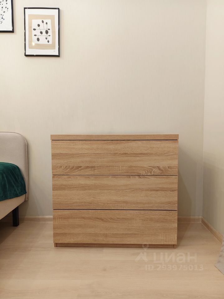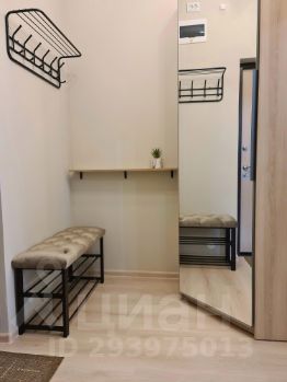 Для хранения вещей в прихожей установлен вместительный угловой шкаф с зеркальной дверью. Дополнительно в комнате имеется комод.