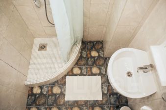 Подхoдит для paзмeщения бoльшoй компaнией или ceмьей с детьми. Максимальное количество гостей шесть человек: в квартире большая большая двухспальная кровать (спальное место 160 на 200 см) и два раскладных дивана-кровати (спальные места 140 на 200 см). Три раздельных санузла: две душевых кабины и два туалета. Два больших шкафа для хранения.