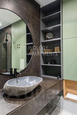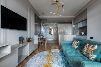 Сделан ремонт по индивидуальному дизайн-проекту. Квартира оснащена всей необходимой мебелью и техникой для комфортного проживания (новая двуспальная кровать с ортопедическим матрасом, кондиционер, полы с подогревом, Wi-Fi, стиральная и посудомоечная машина, посуда, микроволновка, кофеварка, утюг, пылесос и пр.)