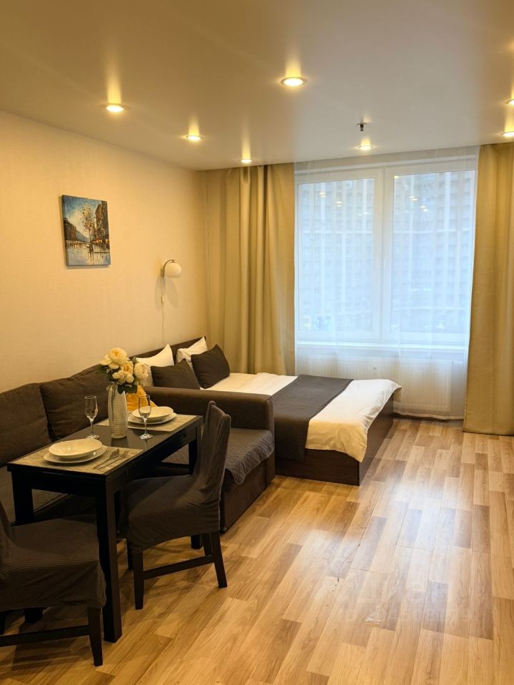 Апартаменты с дизайнерским ремонтом и удобной мебелью полностью оснащены необходимой бытовой техникой : варочная поверхность, чайник, микроволновая печь, холодильник, стиральная машина, ЖК-телевизор, утюг, фен, гладильная доска, бесплатный WI-FI, необходимая посуда.