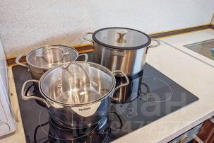 Полноценная кухня с посудомойкой, варочной поверхностью, холодильником, СВЧ печью, электрочайником и всей необходимой посудой и кухонной утварью