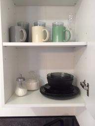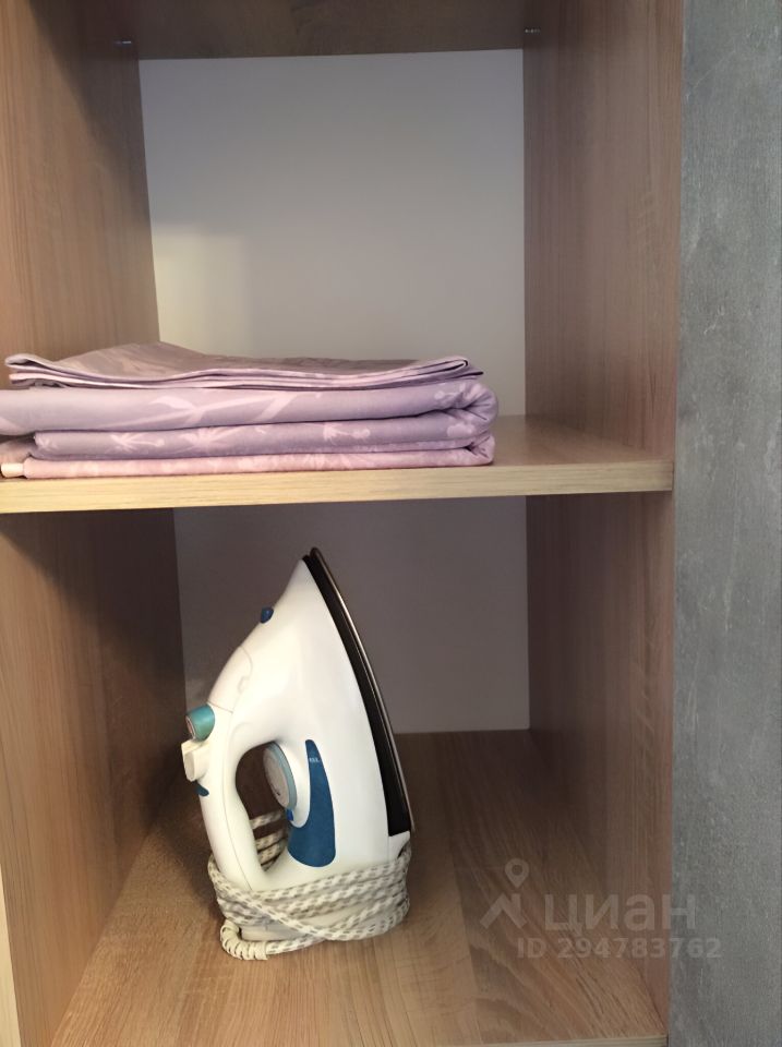 Кухня, холодильник, чайник, утюг, комплект постельного белья, гладильная доска, фен, стиральная машина.