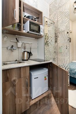 -кухня с техникой, посудой и холодильником (гостиничного образца), СВЧ печь, варочная панель