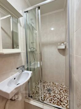 Студия полностью автономная - свой с/у (туалет, душевая кабина); кухонная зона с электроплиткой и мультиваркой, есть вся необходимая посуда (сотейник, сковорода, столовые приборы), электрочайник. Есть раскладной cтол со стульями, мини xoлодильник, телевизор. Сушилка для белья, утюг и гладильная доска, фен.