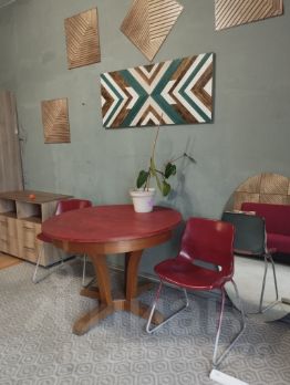 В комнате шкаф, комод, небольшая кухня,пылесос,диван, стол обеденный со стульями , микроволновка. Стиральная машина на две комнаты. Места общего пользования в чистом виде.