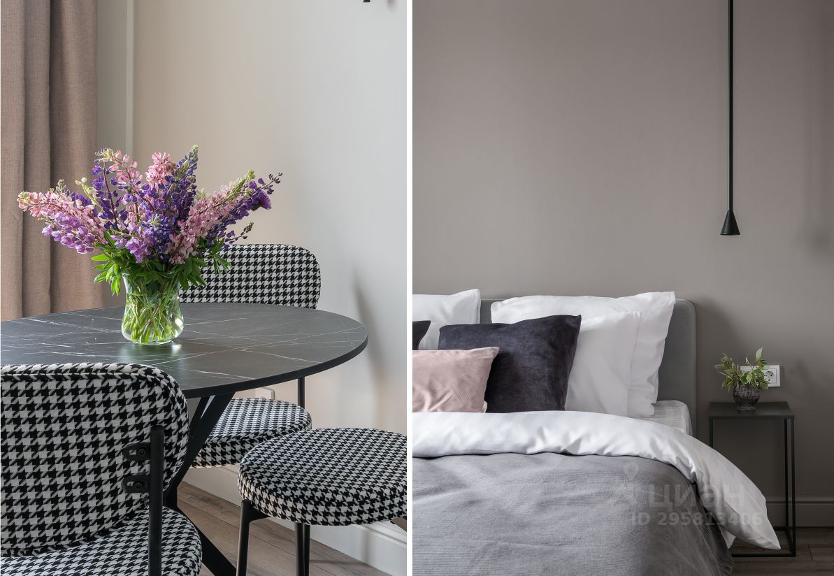 Прочувствуй уют северного города: стильный графичный интерьер в пудрово-серых тонах, панорамный вид с 20-го этажа, большая еврогостиная и отдельная спальня.