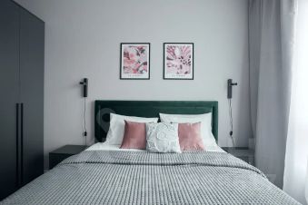 - Просторная спальня с двумя спальными местами: двуспальная кровать и небольшой диван, со спальным местом 100м шириной