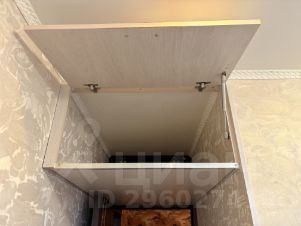 В коридоре сделана гардеробная система для хранения верхних вещей (вешалки в наличии). Также есть мягкий пуфик с местом хранения разных мелочей и этажерка для обуви.