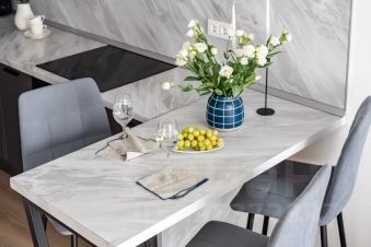 - Кухня со всем необходимым (кофемашина, холодильник, варочная панель, духовой шкаф, чайник, а также посуда, приборы и фильтр для питьевой воды).