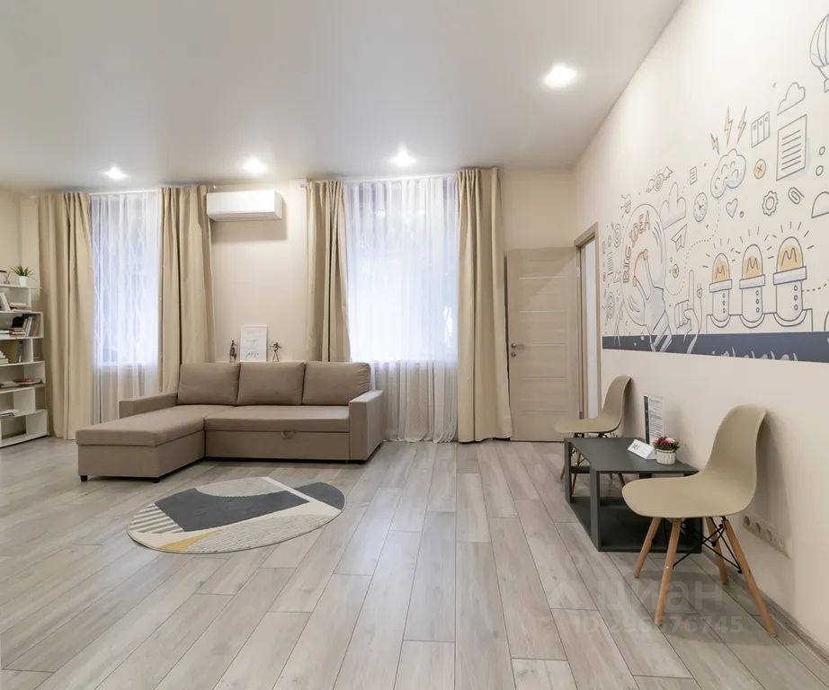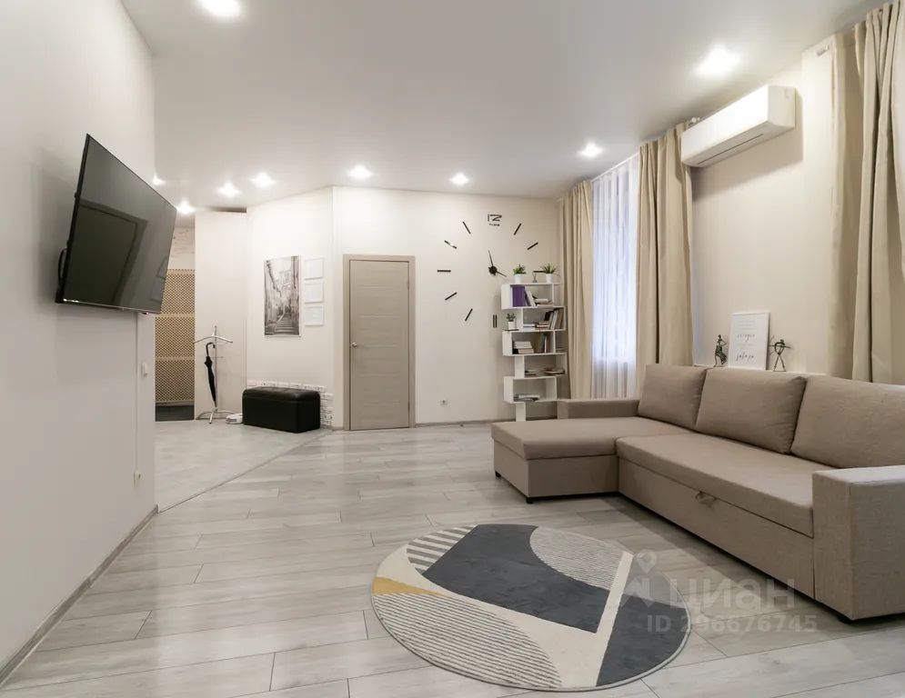 В гостиной: большой телевизор с диагональю 55", который позволит вам наслаждаться любимыми фильмами и сериалами (Кинопоиск), удобно расположившись на удобном и большом диване.