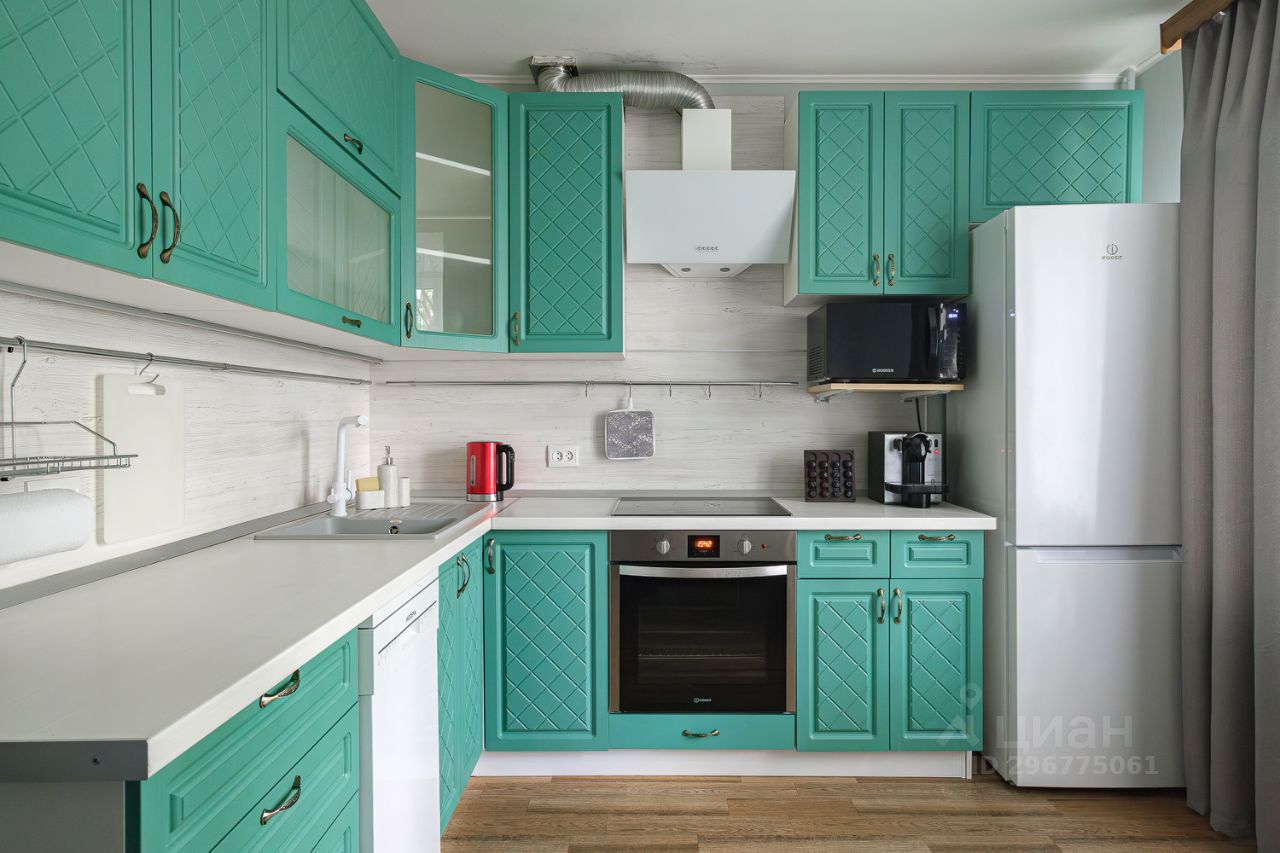 — Кухонная техника: стеклокерамическая варочная панель (4 конфорки), духовой шкаф, микроволновка, холодильник с морозильной камерой, чайник, блендер