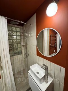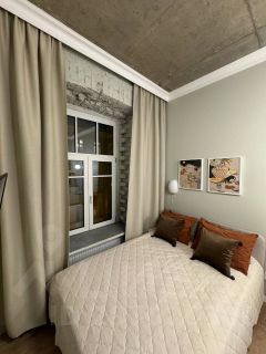В апартаментах сделан дизайнерский ремонт. Добавлено много освещения, высокие потолки 3,2м, красивая стеклянная стена в части кухни/душевой. Встроенный шкаф в прихожей, 2 шкафчика в комнате, вместительная антресоль над ванной; -широкий подоконник для любителей устроиться с чашечкой чая и видом на старый город;
