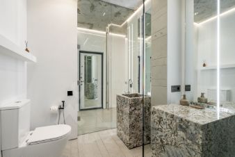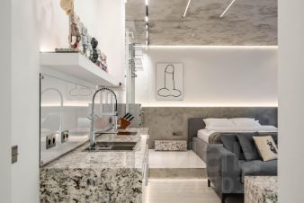 Студия выполнена по уникальному дизайн-проекту в стиле современный минимализм.