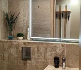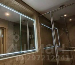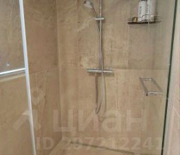 Санузел совмещен с просторной душевой, огороженной стеклянной перегородкой. Оснащение: